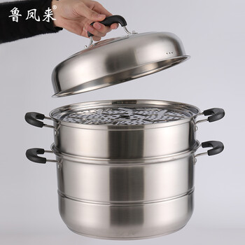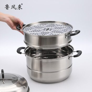 鲁凤来. 蒸锅 304不锈钢32CM三层复合底蒸锅电磁炉通用 金典电木耳手柄