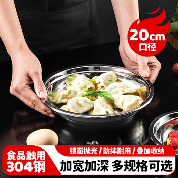 美厨(maxcook)加厚304不锈钢盘碟 盆碟20CM MCWAPD20 加宽加深 耐摔