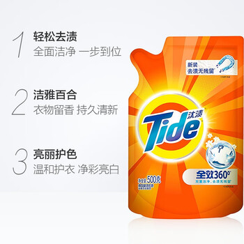 汰渍 洗衣液洁净除菌有效去污渍不伤手全效360度护洗500g/24袋/箱