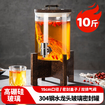 美厨(MAXCOOK)泡酒瓶泡酒坛 酿酒密封药酒罐高硼硅玻璃酒桶带底座10斤装MZX587