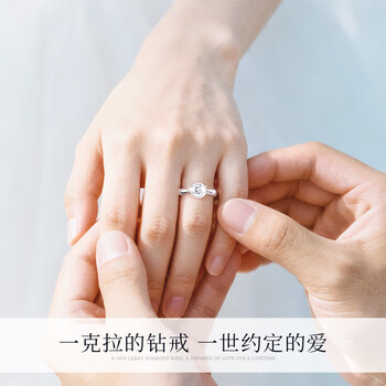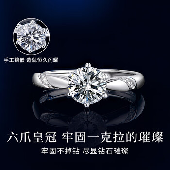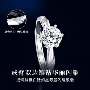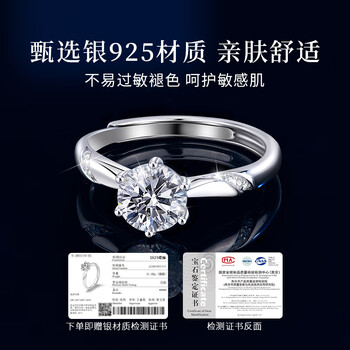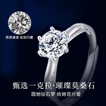 珍尚银中国黄金钻戒求婚戒指莫桑钻戒指女款1一克拉莫桑石纯银戒指S925