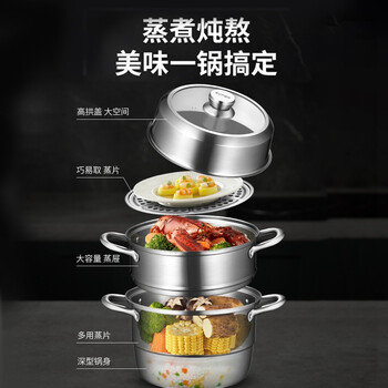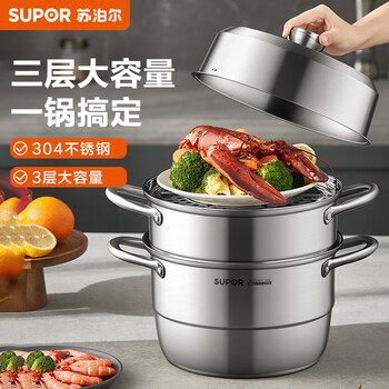 苏泊尔SUPOR 蒸锅304不锈钢三层复底26cm蒸鱼锅电磁炉通用蒸笼EZ26YAS01