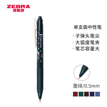 斑马牌(ZEBRA)JJ15巴布熊猫三国系列复古色系中性笔 0.5mm按动子弹头签字笔 学生手账笔标记笔 关羽 墨绿