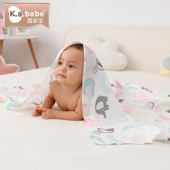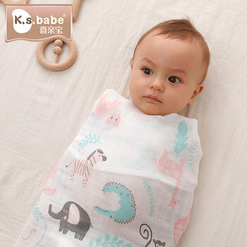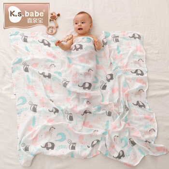 喜亲宝新生儿防惊跳包单盖毯纱布遮挡巾喂奶巾115*130cm厘米动物世界