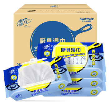 清风(APP)厨房纸 厨房湿巾25片*4包 抽取式(整箱售卖)油污一抹洁净 去油去污 温和不伤手*1