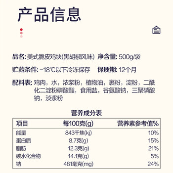 泰森(Tyson)黑胡椒鸡块 1斤冷冻品脆皮鸡块炸鸡油炸小食半成品空气炸锅速食