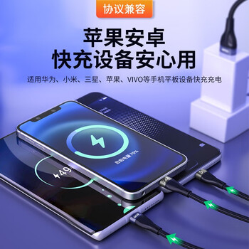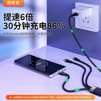 KOOLIFE数据线三合一充电线快充线66w手机一拖三用多功能充电器车载usb/type-c适用苹果华为安卓平板ipad