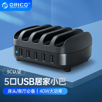 奥睿科(ORICO)多口充电器 40W大功率5口USB苹果华为手机ipad充电站带支架设计 DUK-5P-BK