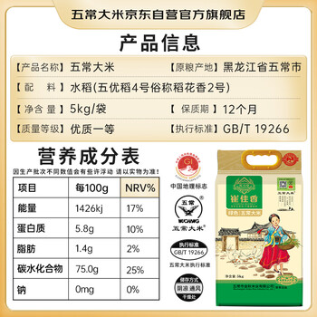 五常大米官方溯源 崔佳香 优质五常大米 10斤 原粮稻花香2号 绿色 新米