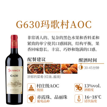 圣芝(suamgy)G630赤霞珠干红葡萄酒750ml*6瓶整箱礼盒 法国进口红酒