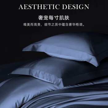 源生活100支贡缎四件套 全棉冬季床上用品 纯色高端套件1.8米床 220x240cm 静谧蓝