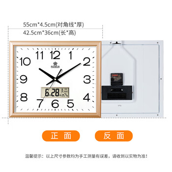 POWER霸王挂钟大号方形钟表中式大气万年历温度时钟办公挂表长42cm
