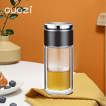 果兹(GUOZI)GZ-S54 水杯茶杯居家办公室星羽控茶杯 双层玻璃杯 225ML 颜色随机