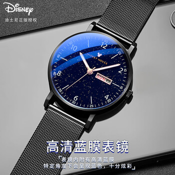 迪士尼(Disney)男士手表时尚潮流双日历石英表初中高中学生青少年手表男星空钢带