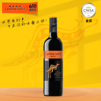 黄尾袋鼠(Yellow Tail)世界系列 梅洛红葡萄酒 750ml 智利原瓶进口红酒
