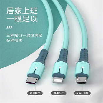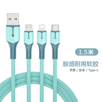 孜泰 6A三合一数据线苹果/Type-c/安卓手机充电器线车载快充液态软胶iphone14/13华为小米 1.5米 蓝色