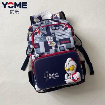 YOME小学生书包动漫卡通拼色1-4年级减压男孩女生儿童超轻便背包 藏青*1