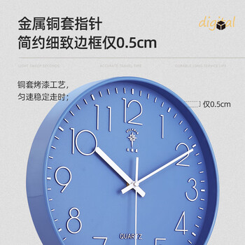 北极星(POLARIS)挂钟客厅钟表挂墙家用时钟现代简约大气挂表时尚14英寸石英钟蓝色