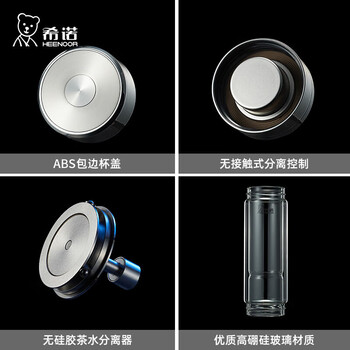 希诺双层玻璃杯磁吸式茶水分离杯子男高档茶杯水杯XN-7012紫灰色300mL