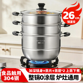 美厨(maxcook)304不锈钢蒸锅 26CM三层复底 燃气炉电磁炉通用