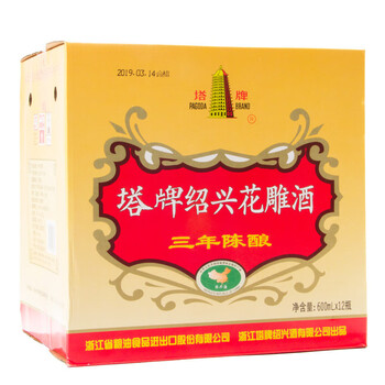 塔牌 花雕酒三年 半干型 绍兴黄酒 600ml*12瓶 整箱装 加饭酒