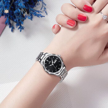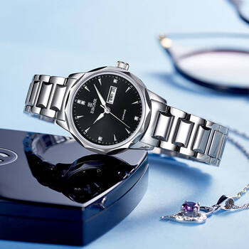 依波(EBOHR)手表女 大师系列节日礼物钨钢圈情侣表黑色石英女表56330120