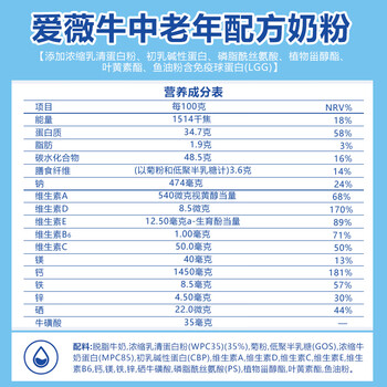 爱薇牛中老年A2β免疫球蛋白低GI高钙脱脂奶粉800g*2礼盒送父母澳洲进口