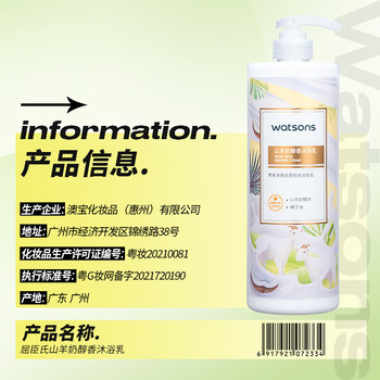 屈臣氏 山羊奶柔润沐浴乳1L(山羊奶精华 椰子油 温和洁净)