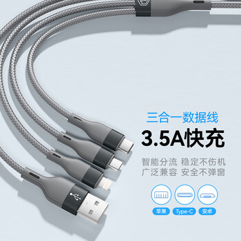 京东京造苹果数据线三合一Type-c安卓手机充电线3.5A一拖三头适用于苹果iphone16/17小米华为荣耀三星