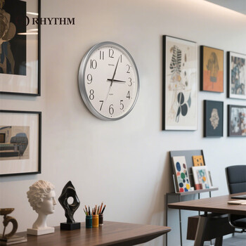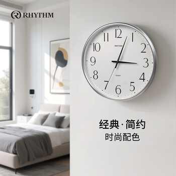 丽声(RHYTHM)表卧室家用表挂墙时钟32cm炫银CMG529XC19简约挂钟超大