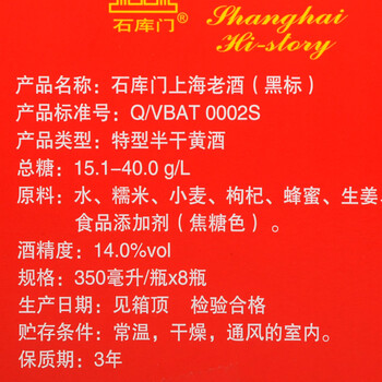 石库门黑标1939半干型海派黄酒350ml*8瓶整箱装上海老酒 送礼礼盒