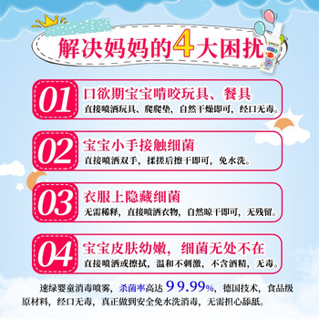 Solenal消毒液宝宝奶瓶玩具衣服杀菌免水洗房间除菌液婴儿专用消毒喷雾