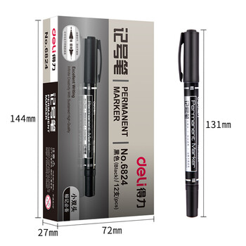 得力(deli)双头勾线记号笔 油性马克笔勾线笔签字笔办公记号笔 6824 黑色 12支/盒 5盒装