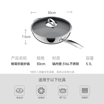 蜂窝炽能炒锅30CM+钢化玻璃锅盖