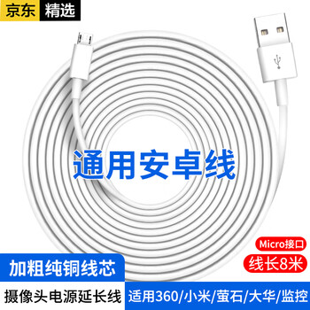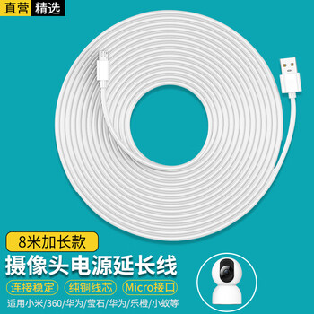 轩邑 适用小米360萤石华为乐橙小蚁小白普联TP-link摄像头延长线监控电源线8米加长线安卓数据线充电线