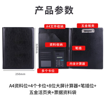 优必利 A4皮质文件夹 多功能房产销售夹 经理夹保险汽车行业谈客夹 培训销讲夹资料夹定制logo 黑色