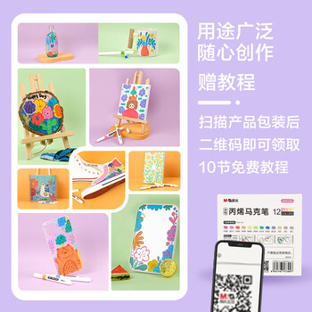晨光(M&G)文具12色水性丙烯马克笔安全美术生专用绘画涂鸦炫彩儿童女孩生日开学礼物APMT3304