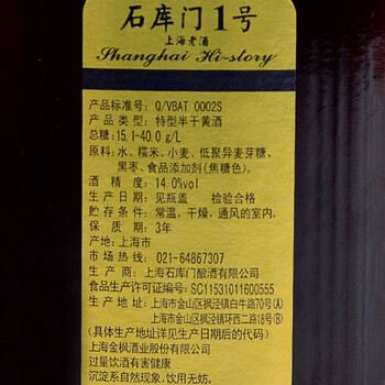 石库门蓝牌1号 半干型 海派黄酒 500ml 单瓶装 上海老酒 送礼