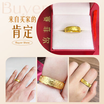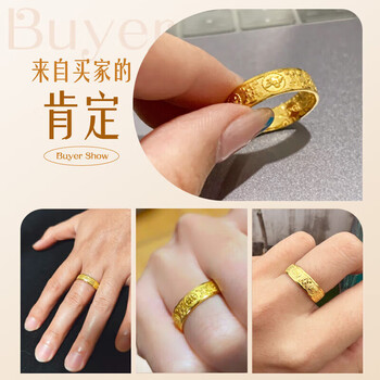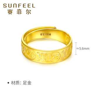 赛菲尔 黄金戒指男足金福禄寿喜财大气显宽面男戒 活口 约6.6克