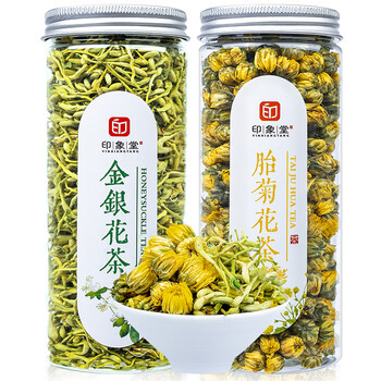 印象堂茶叶花草茶金银花茶浙江菊花茶组合110g共2罐装礼品养生茶