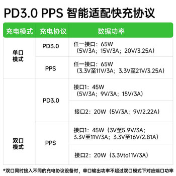 65 瓦的双 USB-C® GaN 壁式充电器1个 型号:WCH013yzWH