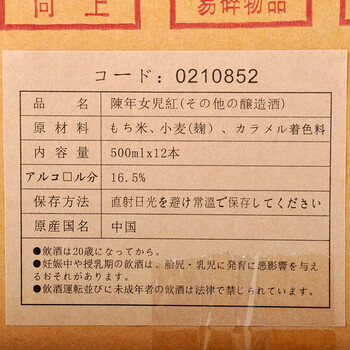 女兒红 出口陈年花雕 半干 绍兴 黄酒 500ml*12瓶 整箱装 出口日本