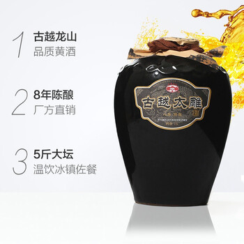 古越龙山太雕八年 半甜型 绍兴黄酒 2.5L 单坛装