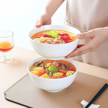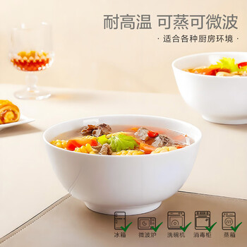 斯凯绨(Sky Top)陶瓷汤碗泡面碗纯白沙拉碗骨瓷家用酒店餐具套装7英寸奥碗2件