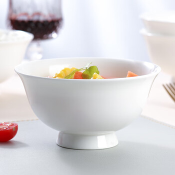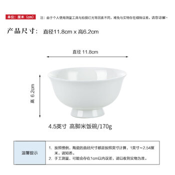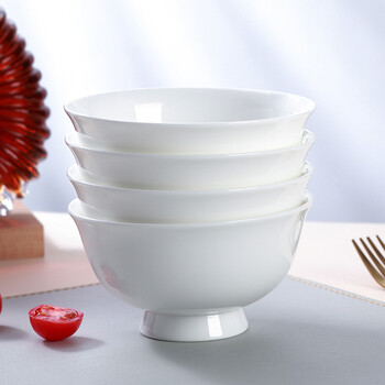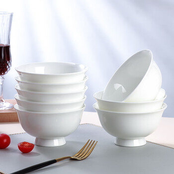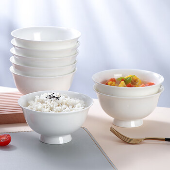 斯凯绨(Sky Top)米饭碗陶瓷汤碗骨瓷防烫高脚碗纯白家用酒店餐具4.5英寸8件套装
