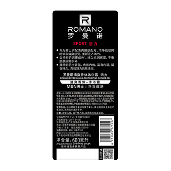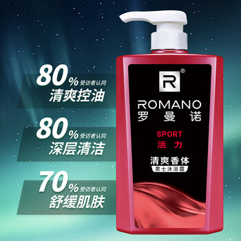 罗曼诺(ROMANO)沐浴露男士 持久留香滋润保湿香水沐浴乳 活力净爽醒肤600g