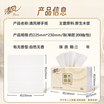 型号:B913AME 成分:原生木浆 单张规格:225mm*230mm (单层) 数量:200抽/包 10包/箱 此链接为10包整箱价格