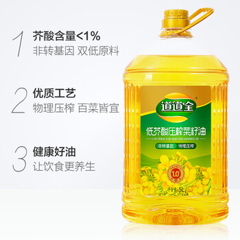 道道全【保真菜籽油】食用油 低芥酸压榨菜籽油 芥酸含量<1% 5L*1桶