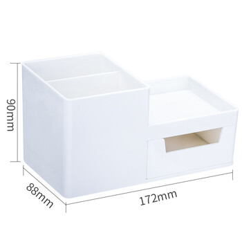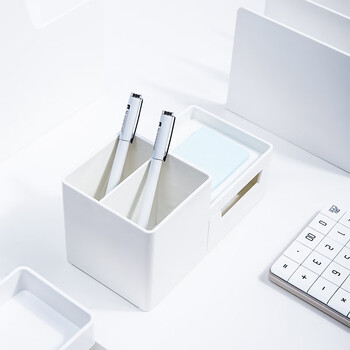 得力(deli)8907 学生办公桌面收纳盒 多功能带抽屉创意笔筒化妆盒多隔收纳桌面储物盒 白色 单个装