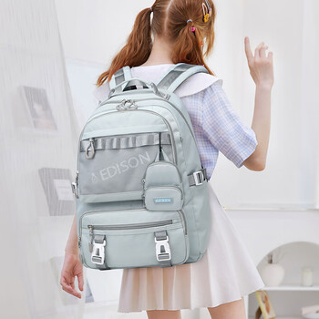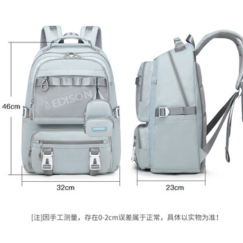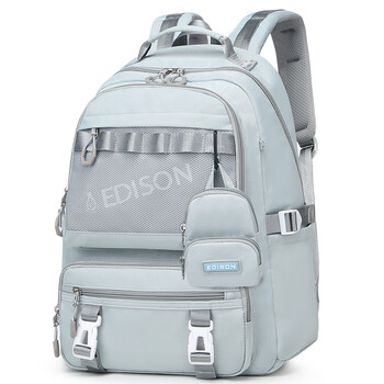 爱迪生发明家初中生书包大容量双肩包男女高中学生校园休闲背包 2270-2 浅灰兰